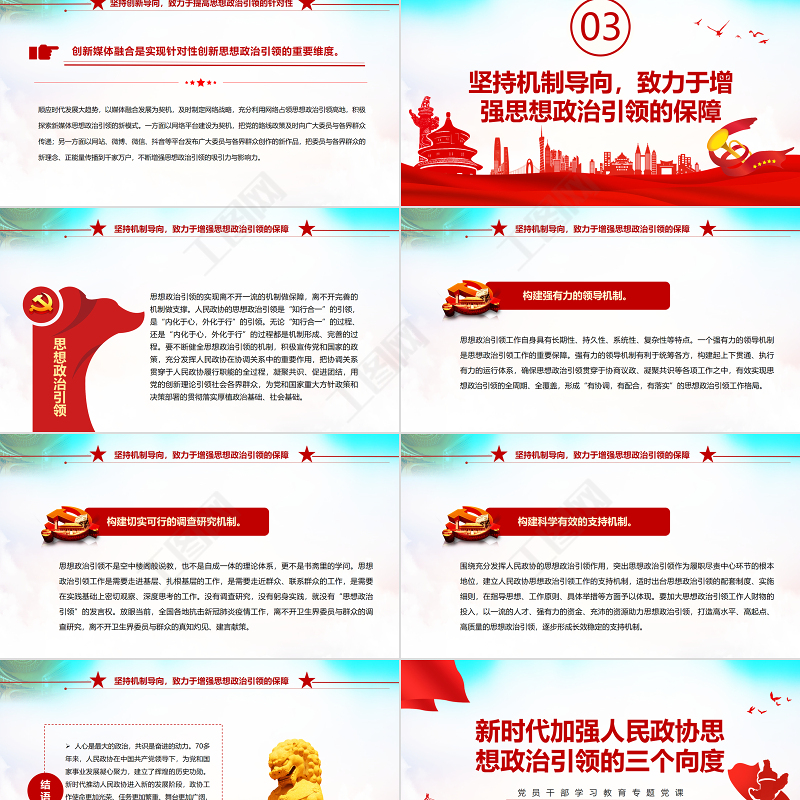 新時代加強人民政協思想政治引領的三個向度PPT紅色黨政風黨員干部學習教育專題黨課課件模板