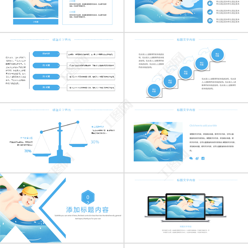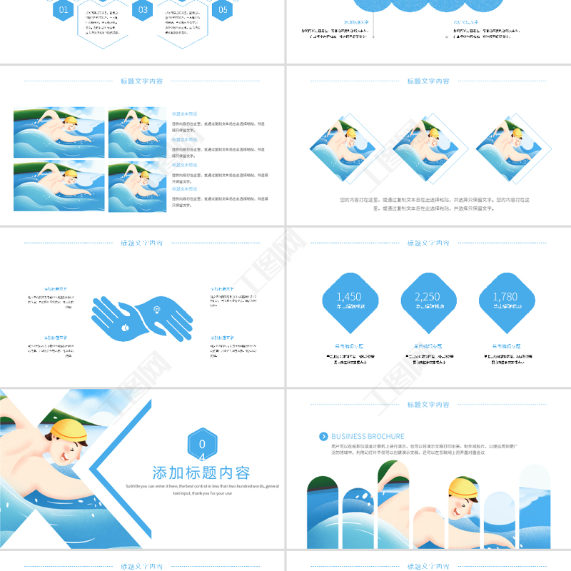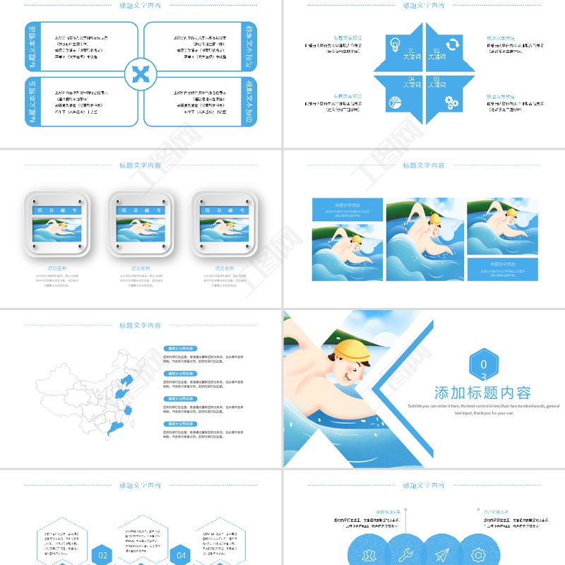 工圖網提供原創游泳健身比賽少兒游泳訓練培訓PPT模板-版權可商用供會員免費下載。更多精彩黨課PPT素材,盡在工圖網。