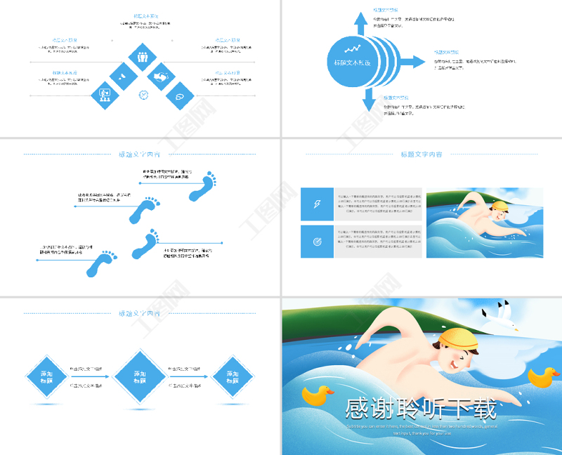 原創游泳健身比賽少兒游泳訓練培訓PPT模板-版權可商用