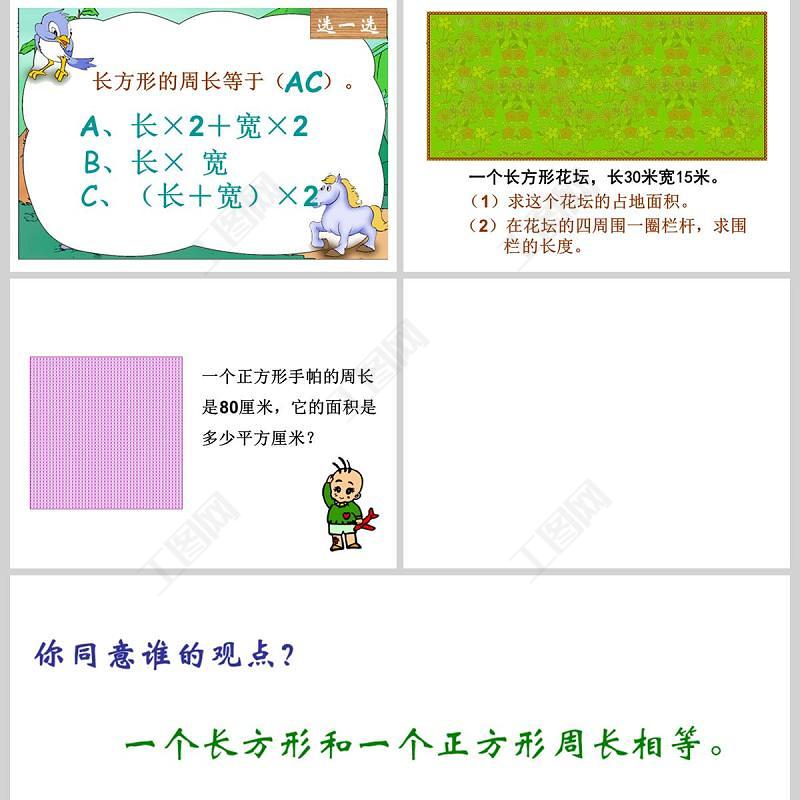 工圖網(wǎng)提供 人教版三年級數(shù)學(xué)課件下冊長方形正方形的面積計算PPT模板供會員免費(fèi)下載。更多精彩黨課PPT素材,盡在工圖網(wǎng)。