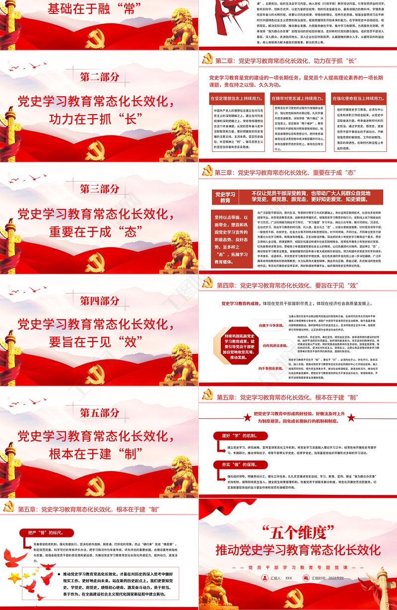 工圖網(wǎng)提供“五個維度”推動黨史學(xué)習(xí)教育常態(tài)化長效化PPT紅色黨政風(fēng)黨員干部學(xué)習(xí)教育專題黨課課件模板供會員免費(fèi)下載。更多精彩黨課PPT素材,盡在工圖網(wǎng)。