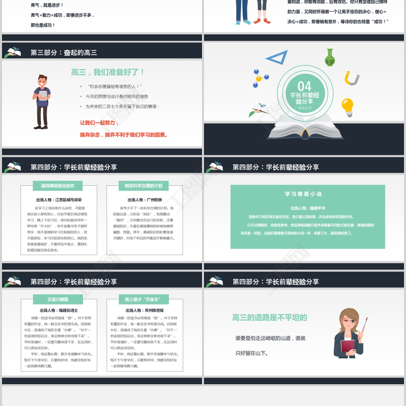 高三的道路是不平坦的誰要是怕走這崎嶇的山道,誰就只好留在山下。第四部分:學長前輩經驗分享