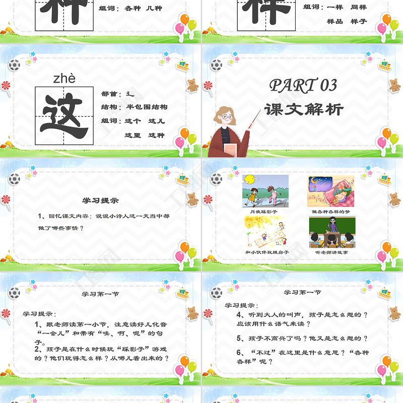 一個(gè)接一個(gè)月夜,正玩著踩影子,就聽大人叫著:“快回家睡覺!”唉,我好想再多玩一會兒啊。不過,回家睡著了,倒可以做各種各樣的夢呢!?正做著好夢,又聽見大人在叫:“該起床上學(xué)啦!”唉,要是不上學(xué)就好了。不過,去了學(xué)校,就能見到小伙伴,多么開心哪!12