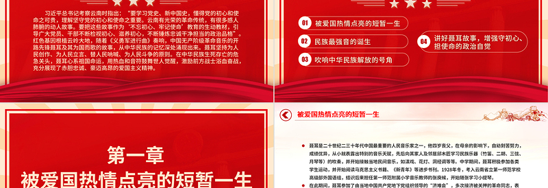 習近平總書記考察云南時指出:“要學習黨史、新中國史,懂得黨的初心和使命之可貴,理解堅守黨的初心和使命之重要。云南有光榮的革命傳統,有很多感人肺腑的動人故事。要把這些故事作為‘不忘初心、牢記使命’教育的生動教材,引導廣大黨員、干部不斷檢視初心、滋養初心,不斷錘煉忠誠干凈擔當的政治品格”。紅色基因根植云嶺大地,隨著《義勇軍進行曲》奏響,中國無產階級革命音樂的開路先鋒聶耳及其為國而歌的故事,從中華民族的記憶深處涌現出來。聶耳堅持為人民創作、為人民立言、替人民吶喊、為人民斗爭的原則。在中華民族生死存亡的危急關頭,聶耳心系祖國命運,用熱血和音符鼓舞世人覺醒,激勵前方戰士浴血奮戰,充分展現了赤膽忠誠、豪邁高昂的愛國主義精神。前言