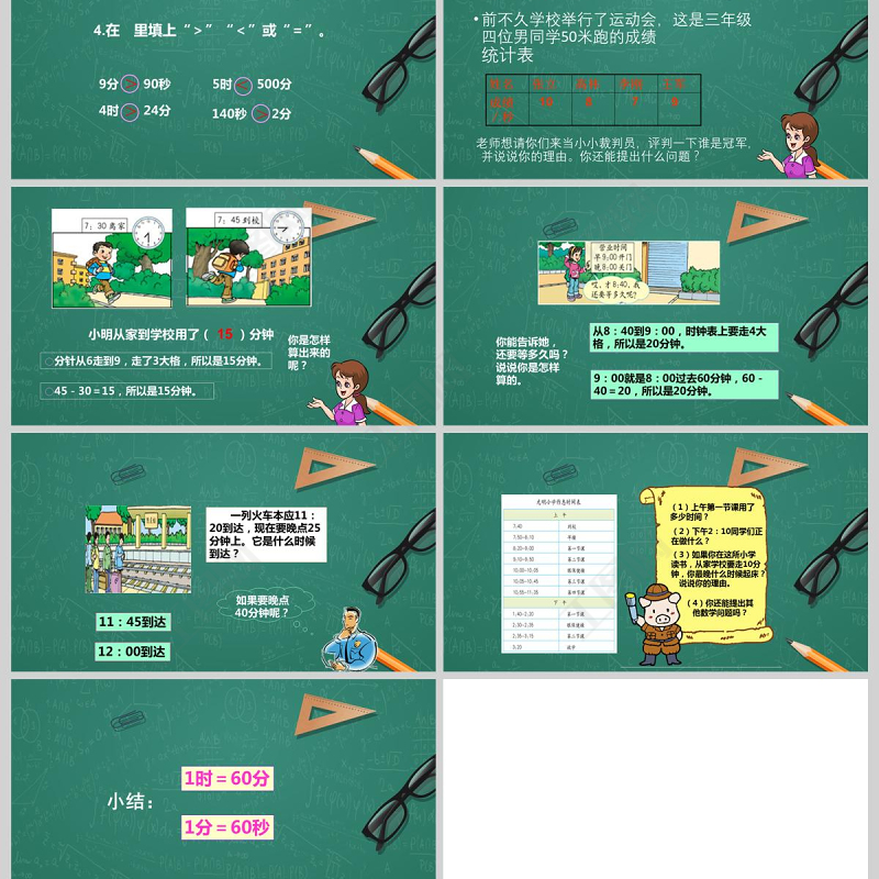 ,人教版三年級上冊第一單元數學時分秒的認識PPT模板 Array