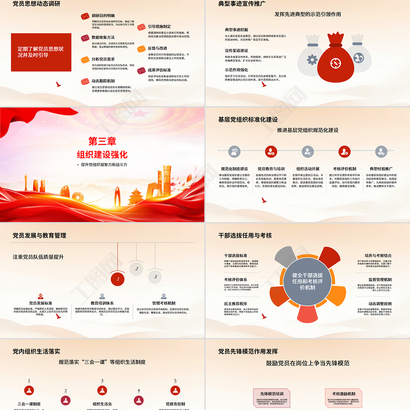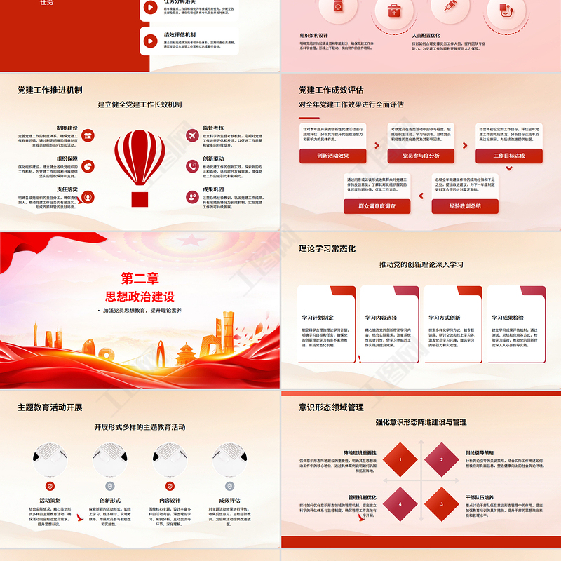 紅色創意黨政機關黨建工作總結述職匯報PPT模板包含