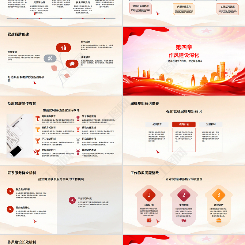 精美黨政風黨建工作總結工作述職匯報PPT模板下載包含