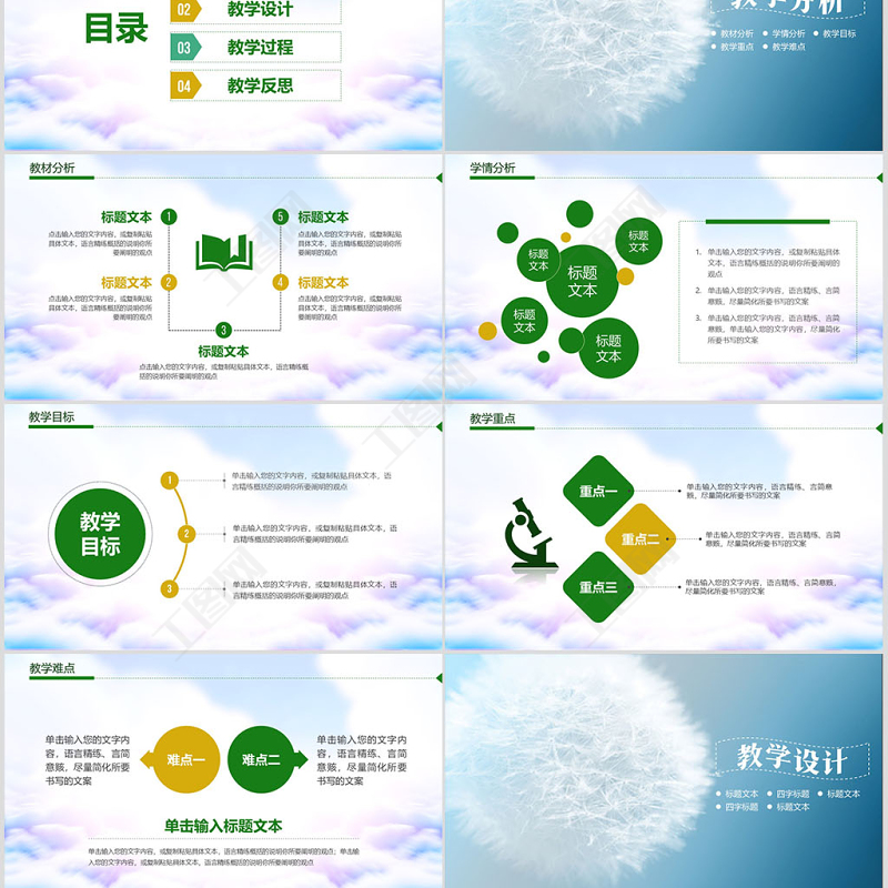 工圖網提供綠色清新教師說課教育教學公開課通用PPT模板供會員免費下載。更多精彩黨課PPT素材,盡在工圖網。