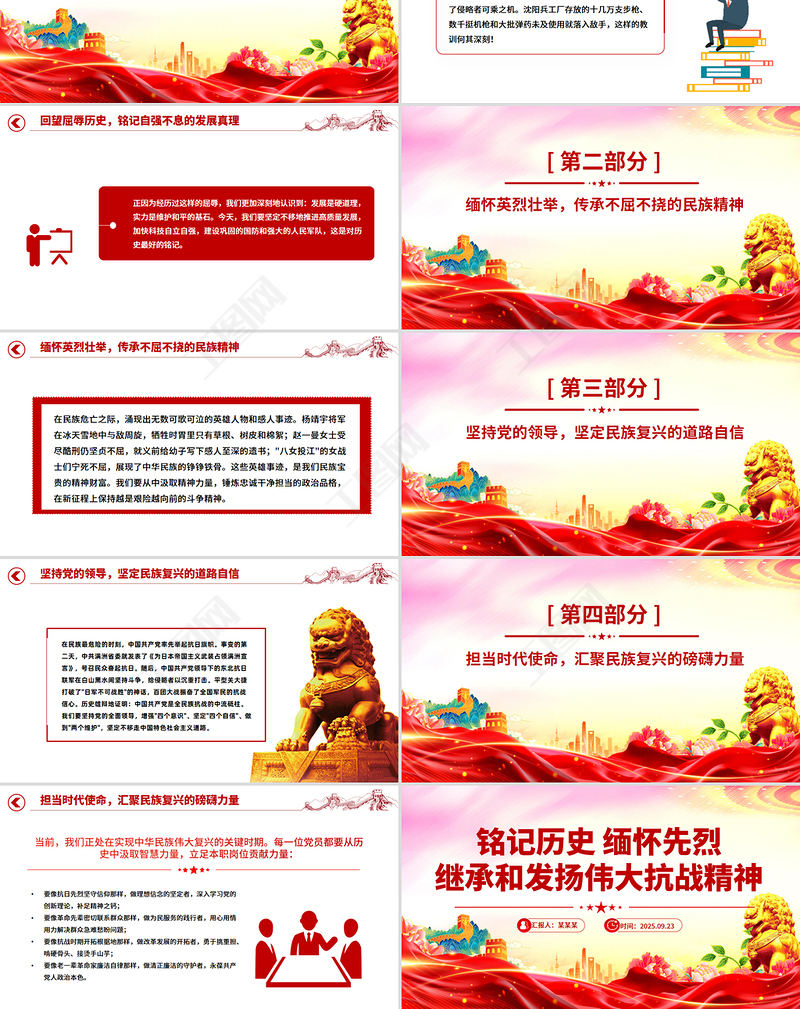 銘記歷史緬懷先烈PPT繼承和發揚偉大抗戰精神黨課下載 Array