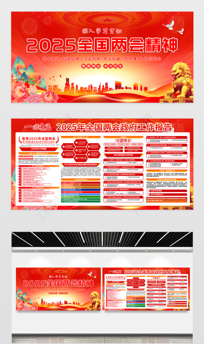 2025政府工作報告展板精美大氣學(xué)習(xí)兩會精神宣傳模板包含