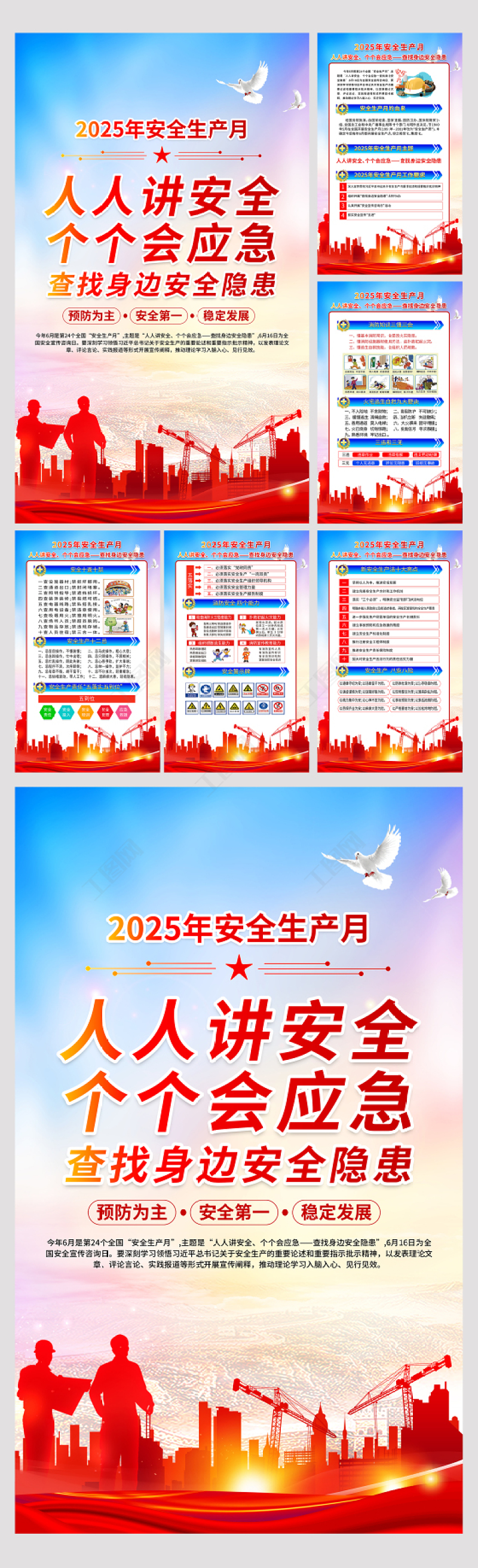 展板 > 紅色精美2025年安全生產月知識宣傳六合一系列掛圖展板模板