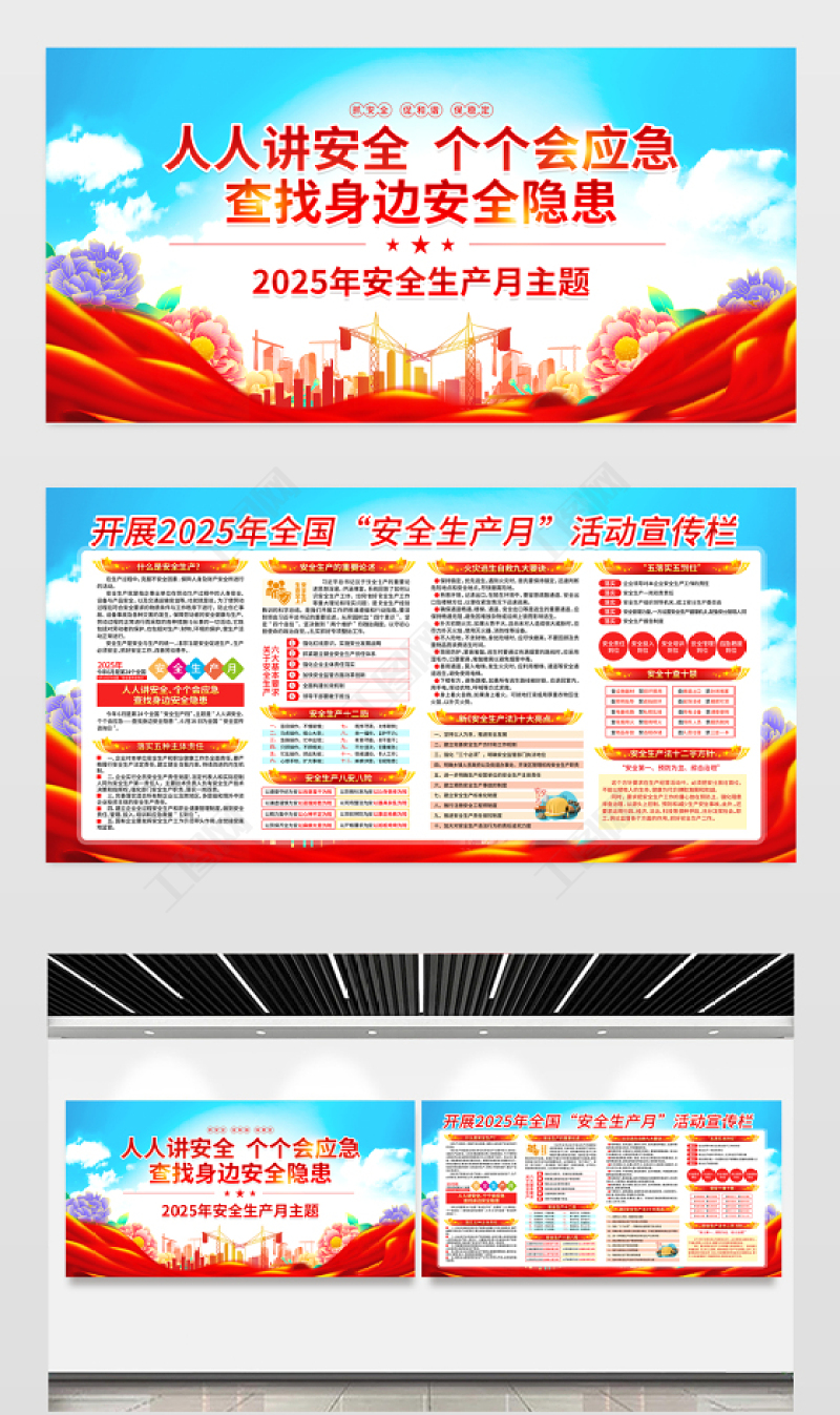 2025年安全生產月掛圖紅色查找身邊安全隱患宣傳教育活動展板系列掛畫模板包含