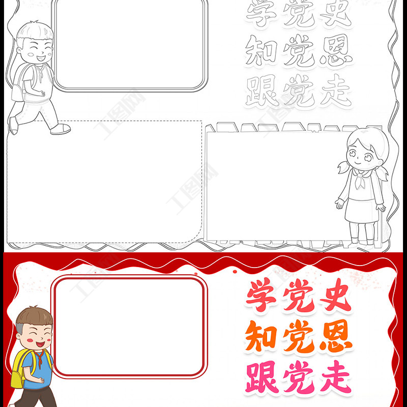 2021學(xué)黨史知黨恩跟黨走手抄報慶祝建黨一百周年含線稿小報模板