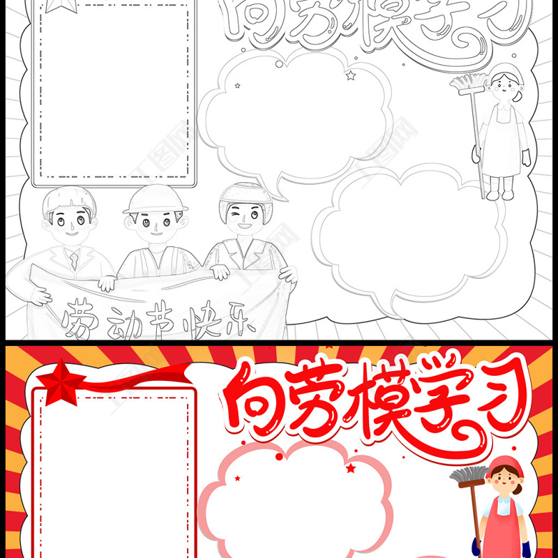 2022向勞模學(xué)習(xí)手抄報(bào)卡通插畫風(fēng)五一勞動(dòng)節(jié)系列電子小報(bào)模板 Array