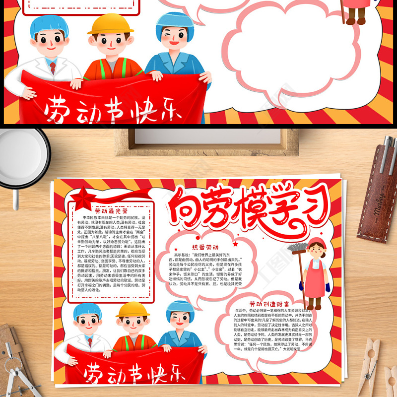 > 其他專題手抄報(bào) > 2022向勞模學(xué)習(xí)手抄報(bào)卡通插畫風(fēng)五一勞動(dòng)節(jié)系列電子小報(bào)模板 【圖片、文字、動(dòng)畫均可編輯】