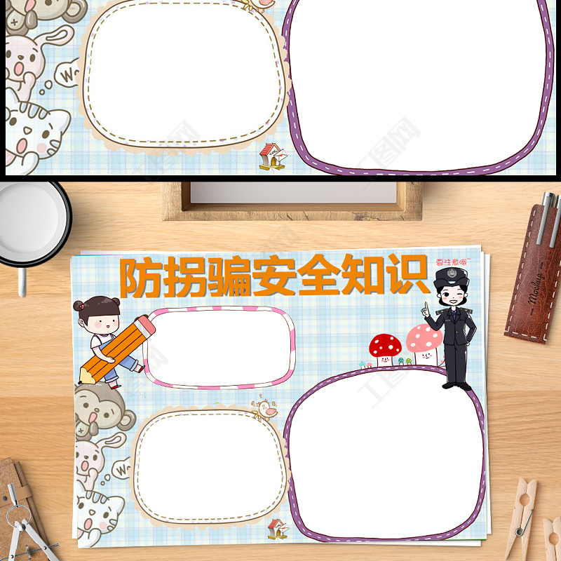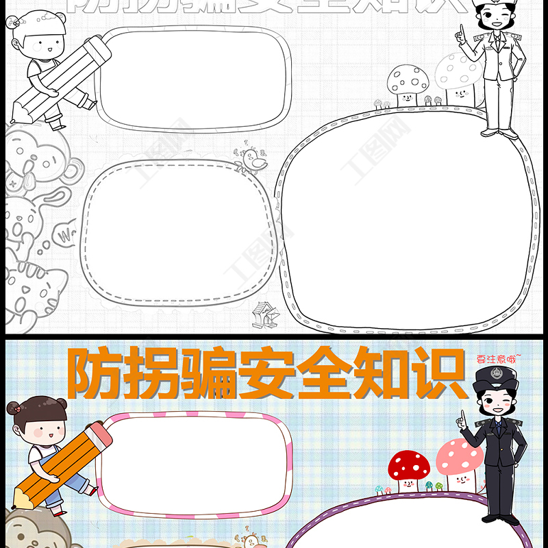 2021 兒童防拐騙安全知識 手抄報 卡通風格 中小學生 暑假安全 系列 手抄報 Array