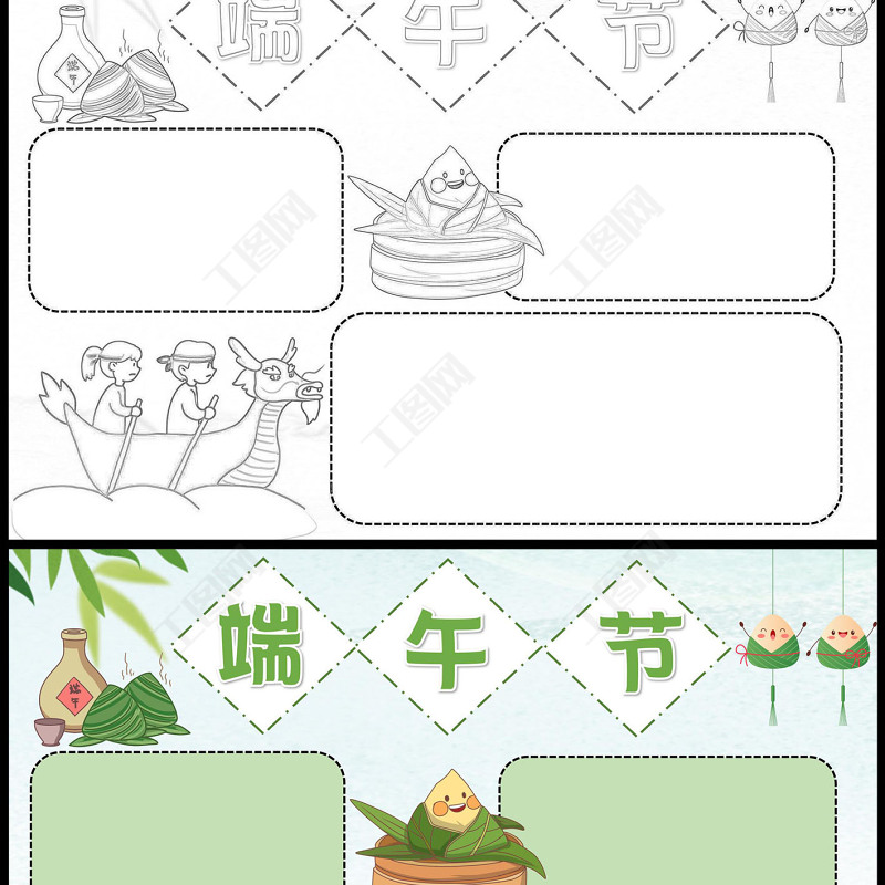 2021端午節手抄報中國傳統文化節日端午節卡通小報模板包含