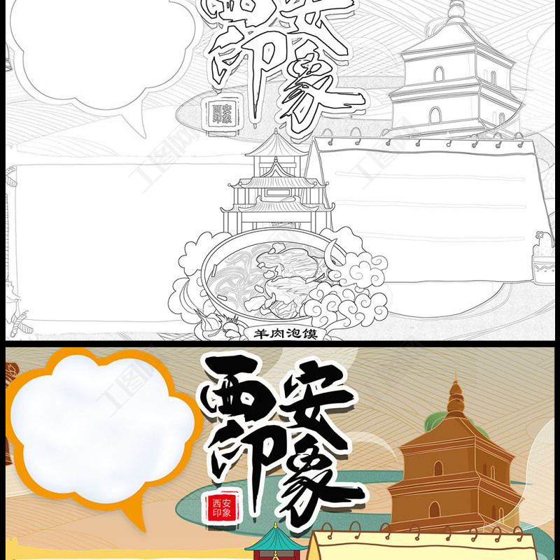 2022西安印象手抄報暑假旅游西安旅行暑假生活電子小報模板 Array