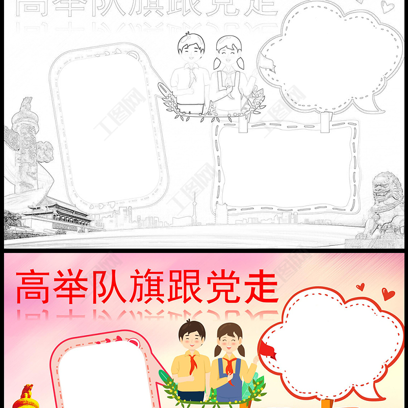 工圖網提供2021高舉隊旗跟黨走手抄報慶祝建黨一百周年含線稿小報模板供會員免費下載。更多精彩黨課PPT素材,盡在工圖網。