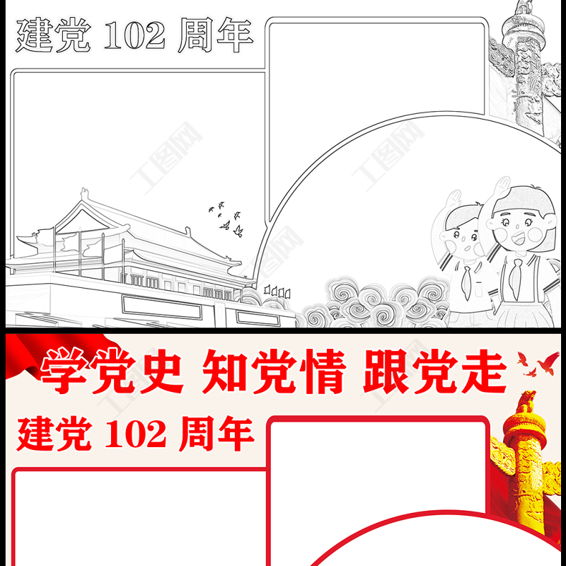 工圖網(wǎng)提供2023學黨史知黨情跟黨走手抄報紅色精美建黨102周年電子小報模板供會員免費下載。更多精彩黨課PPT素材,盡在工圖網(wǎng)。