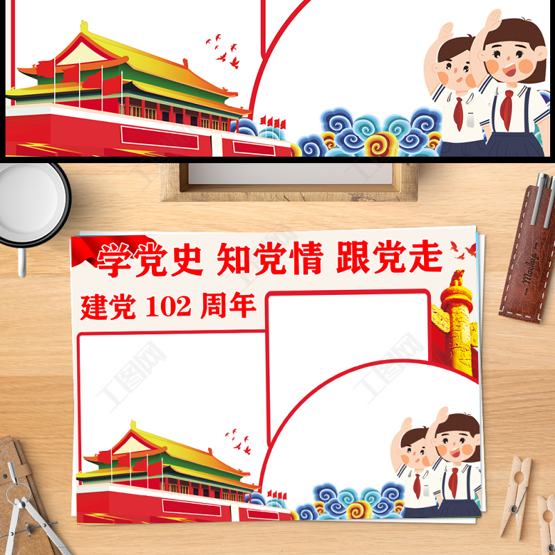 2023學黨史知黨情跟黨走手抄報紅色精美建黨102周年電子小報模板 Array