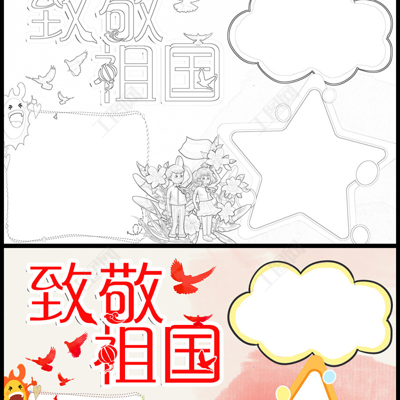 2021致敬祖國手抄報彩色童趣祖國在我心中愛我中華國慶節小報模板 Array