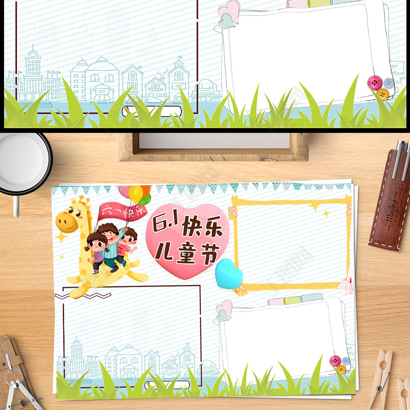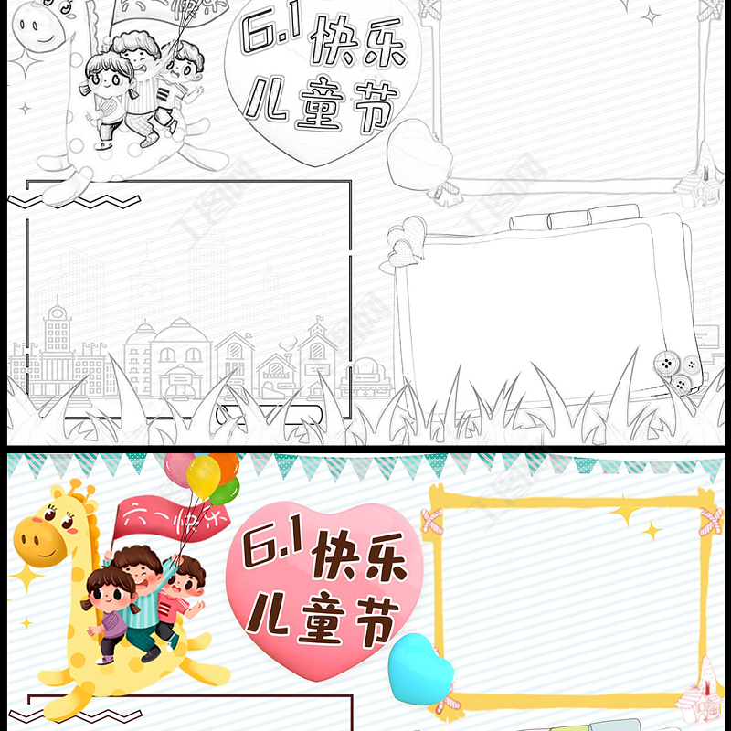 2021歡樂兒童節手抄報卡通風格兒童節主題小報模板包含