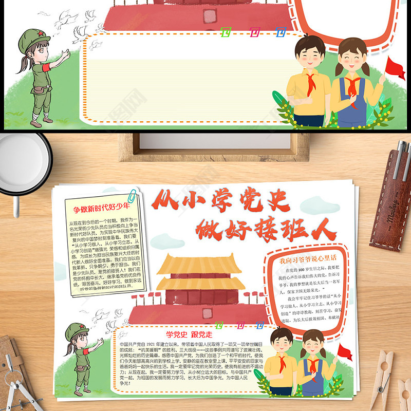 2021從小學(xué)黨史做好接班人手抄報含線稿小報模板(1)