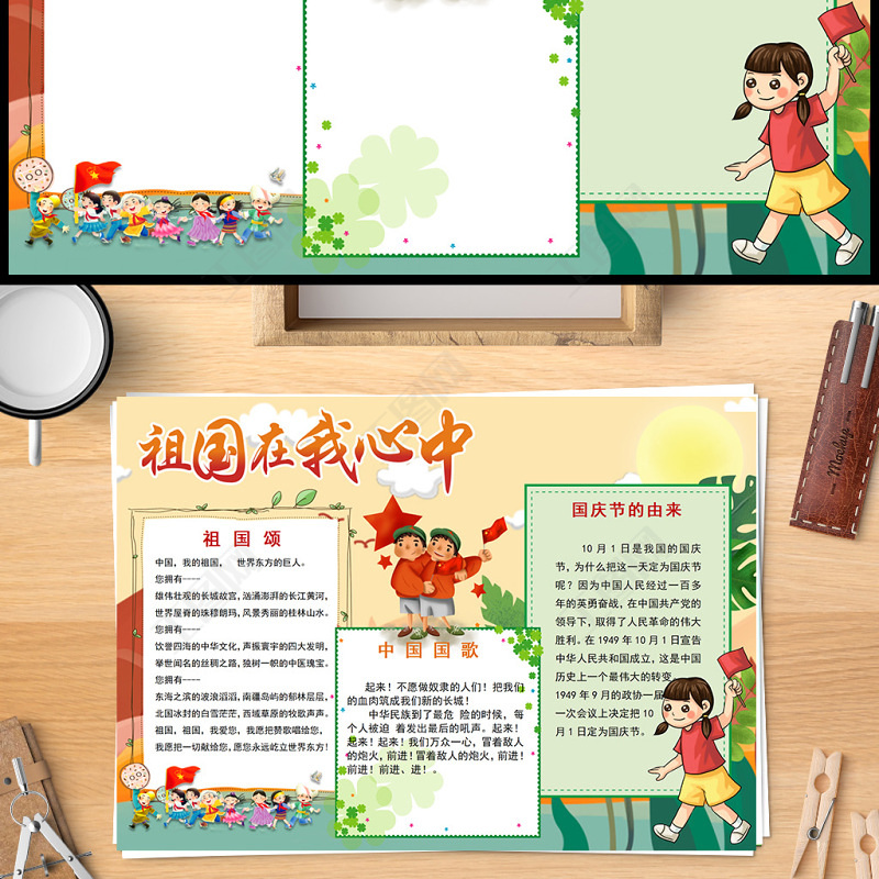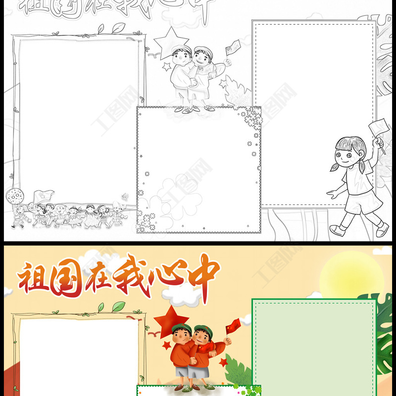 2021國慶節手抄報祖國在我心中手抄報含線稿小報模板 Array