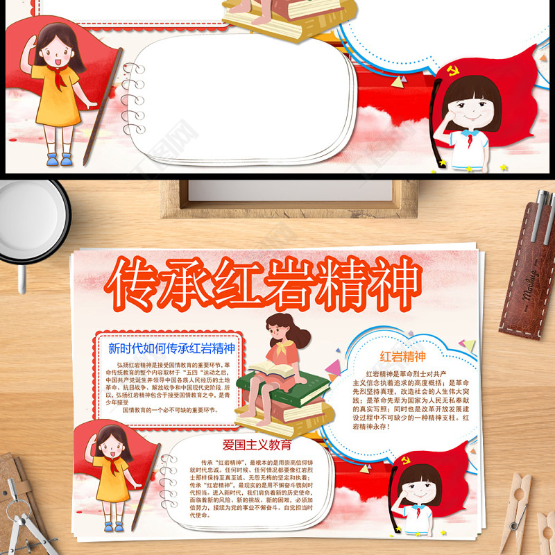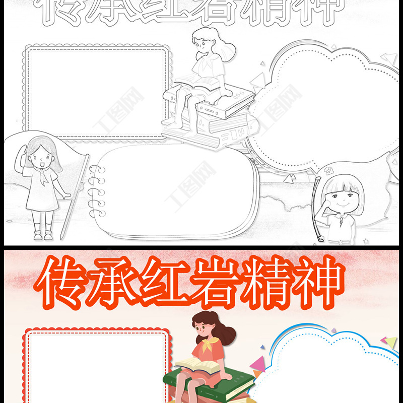 2021紅巖精神手抄報(bào)紅色卡通含線稿傳承紅色精神賡續(xù)紅色血脈小學(xué)生小報(bào)模板 Array