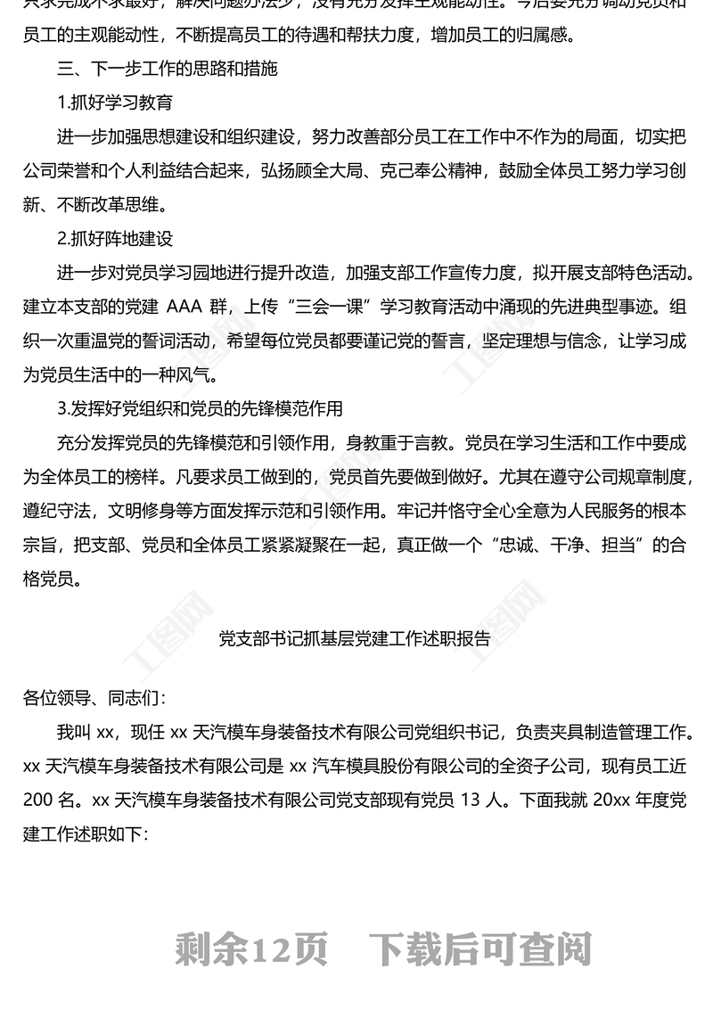 工圖網(wǎng)提供6篇2020-2021年公司企業(yè)黨支部書記抓基層黨建工作述職報告供會員免費下載。更多精彩黨課PPT素材,盡在工圖網(wǎng)。