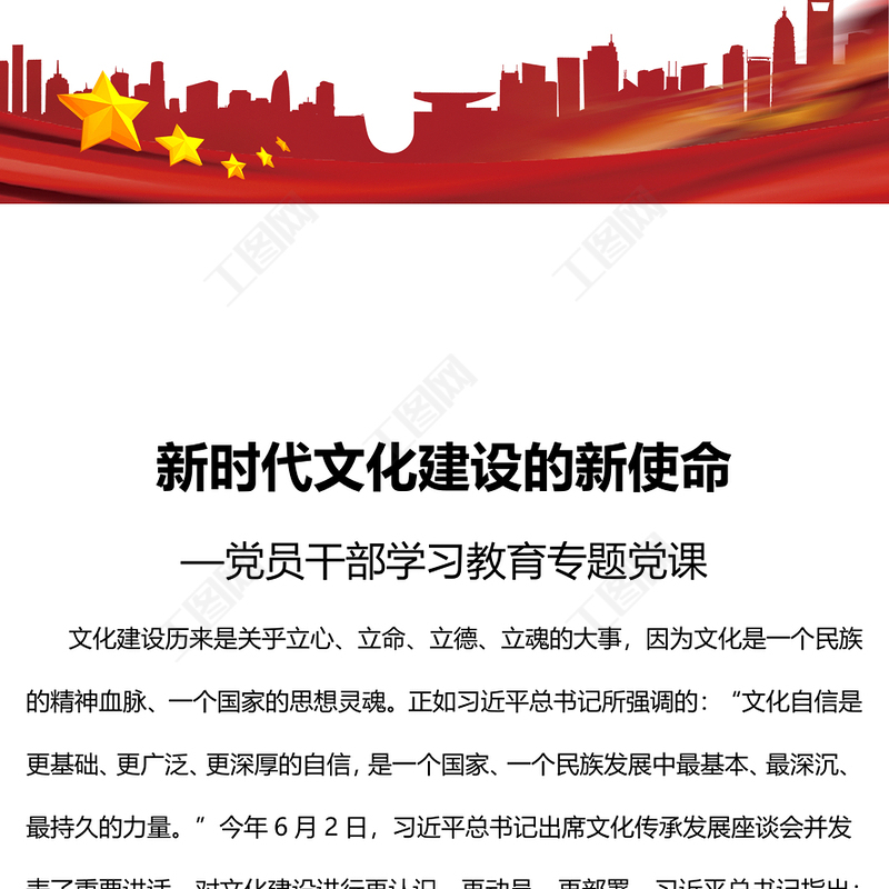 2023新時代文化建設的新使命PPT大氣精美風黨員干部學習教育專題黨課課件 Array