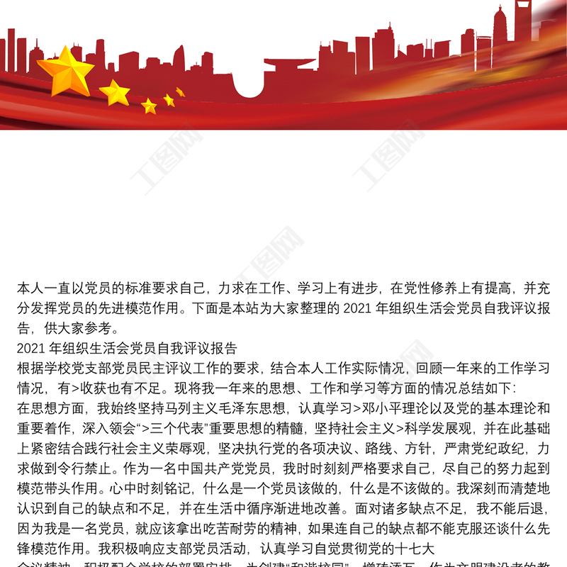 工圖網提供2021年組織生活會黨員自我評議報告三篇供會員免費下載。更多精彩黨課PPT素材,盡在工圖網。