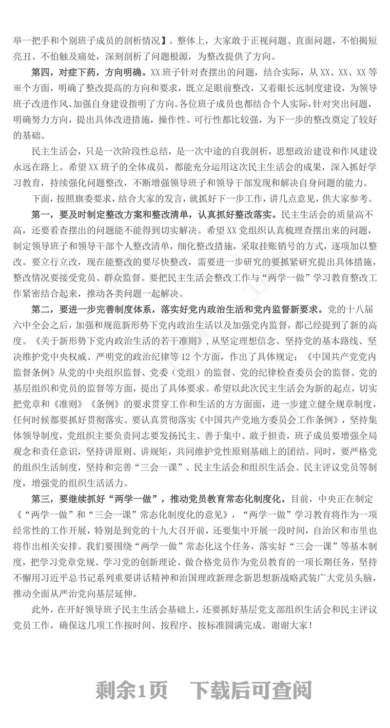 工圖網提供在參加指導班子20XX年度民主生活會時的總結講話供會員免費下載。更多精彩黨課PPT素材,盡在工圖網。