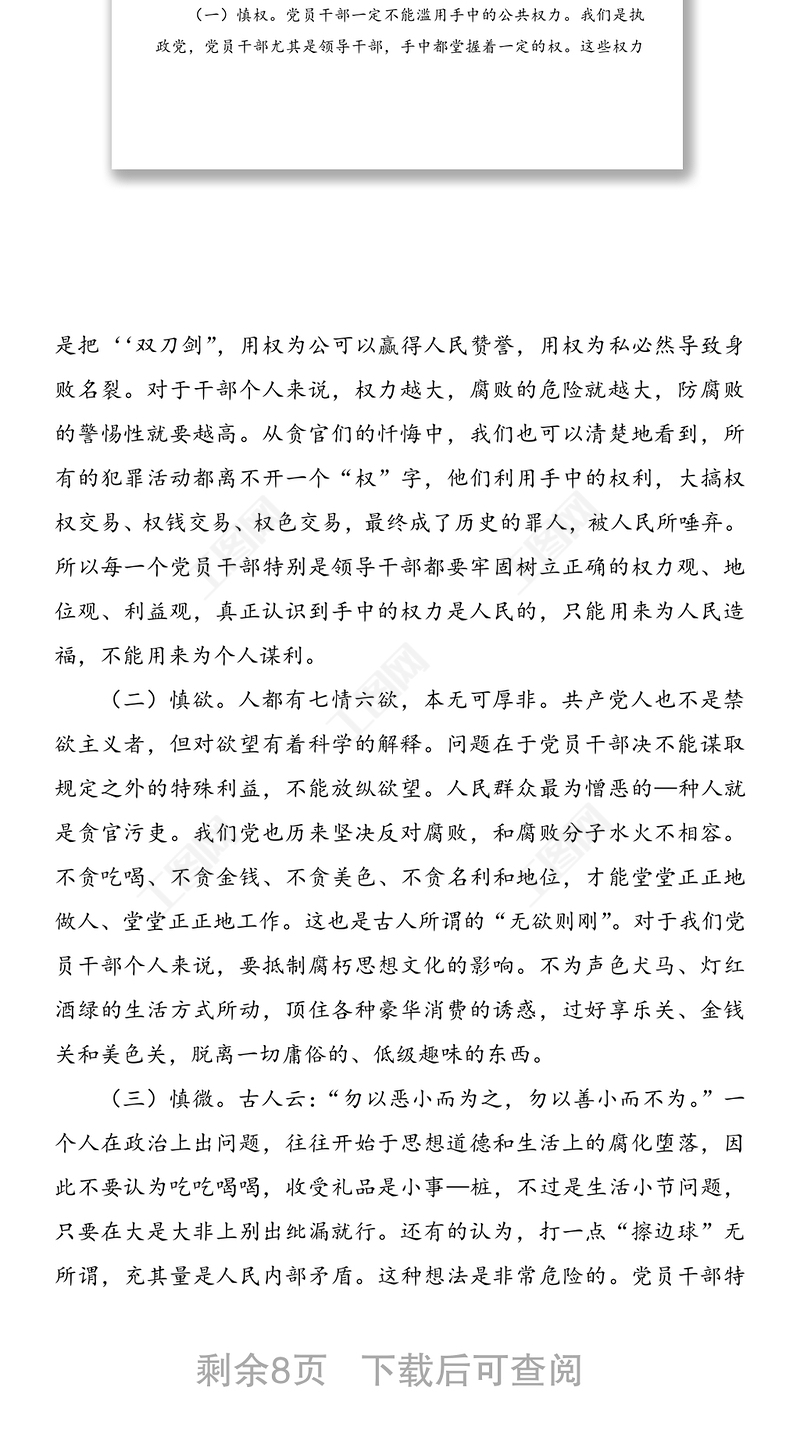 機關廉政黨課:堅持“五慎”,嚴把“三線”,做到“六勿”,全面增強領導干部廉潔自律能力包含