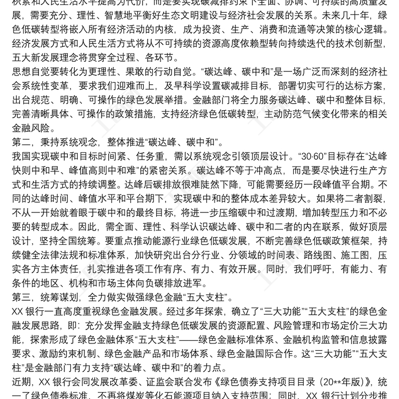 20xx年關于金融支持碳達峰、碳中和主題演講稿范文