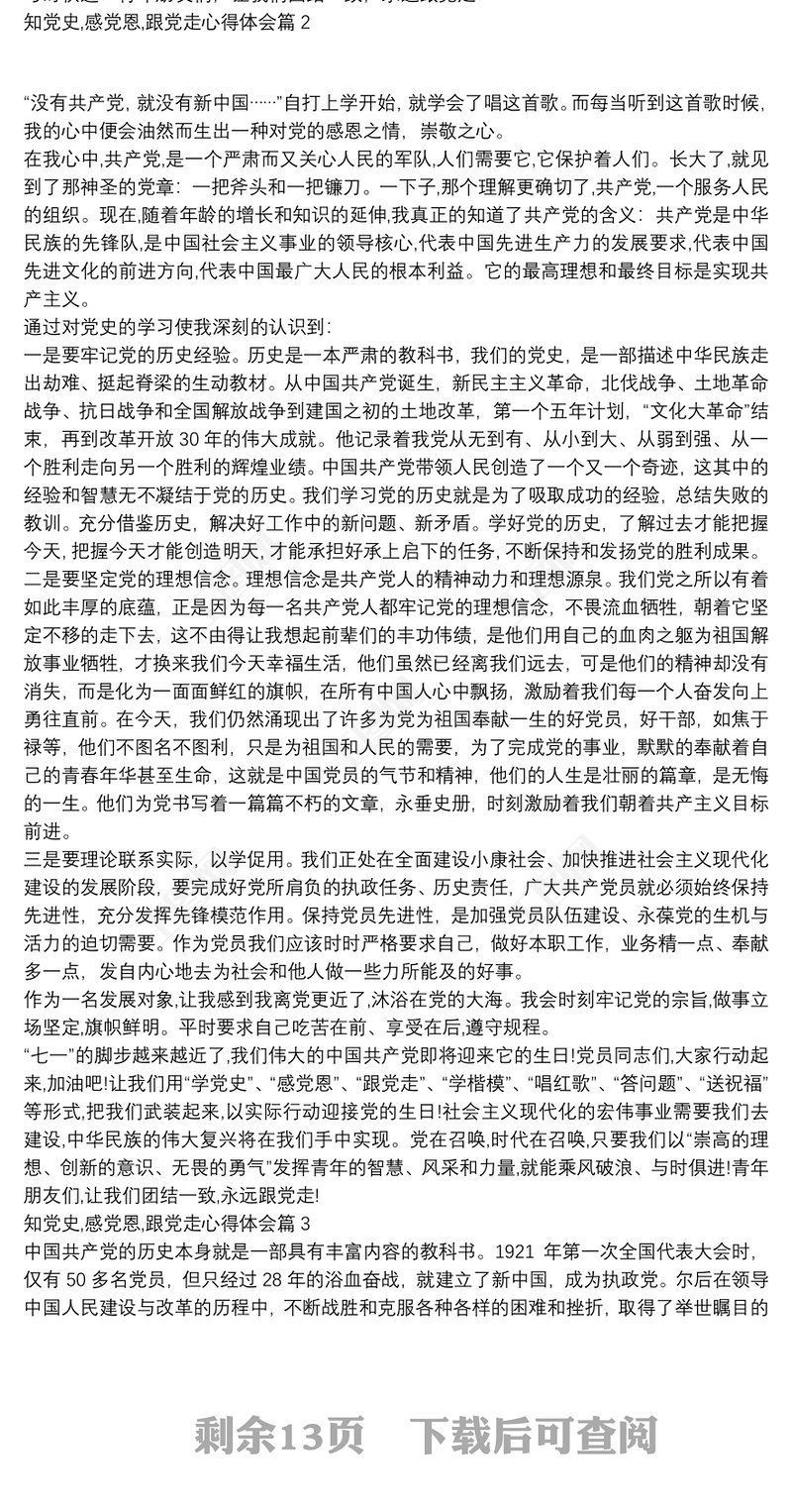 工圖網提供知黨史,感黨恩,跟黨走心得體會14篇供會員免費下載。更多精彩黨課PPT素材,盡在工圖網。