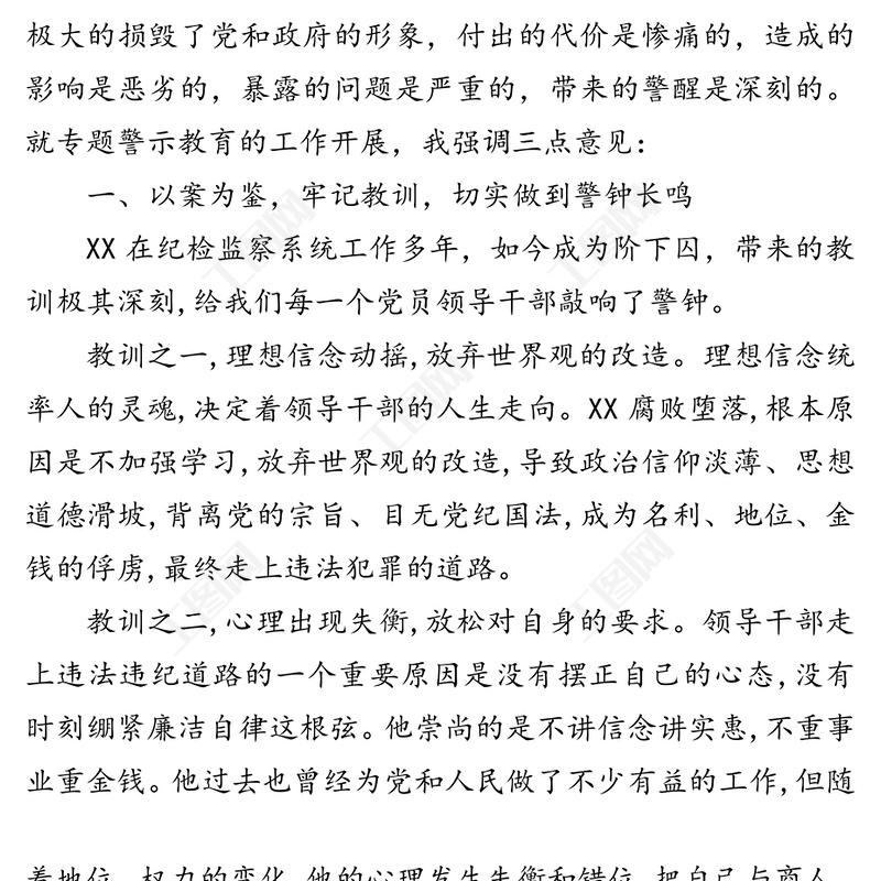 在XXX案件專題警示教育動員部署會上的講話,專題警示教育,公文 Array