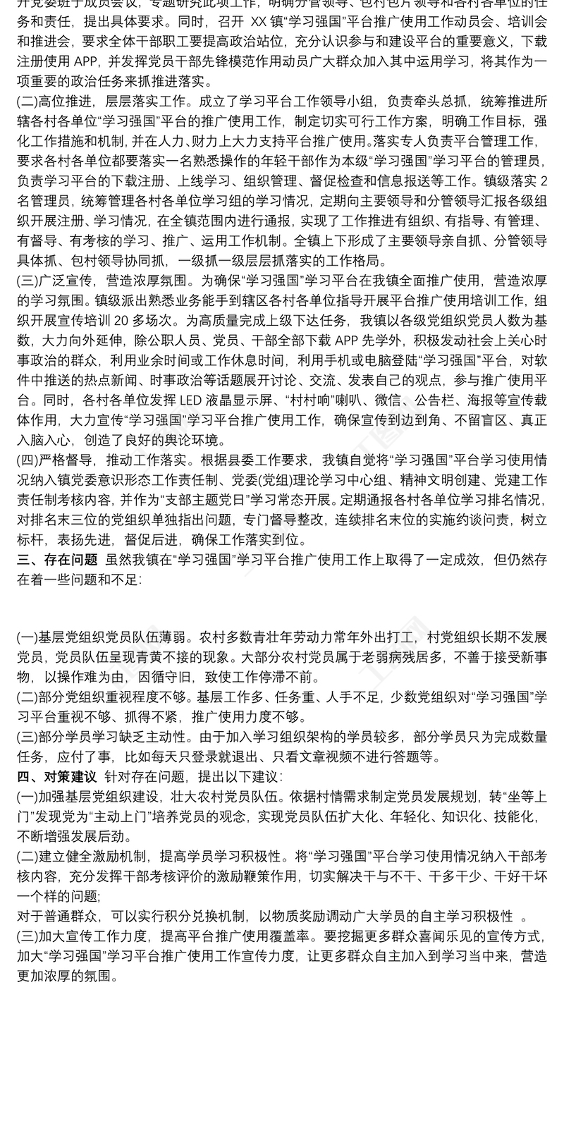 公文范文 > 鎮關于“學習強國”平臺推廣和使用的情況匯報.DOCX