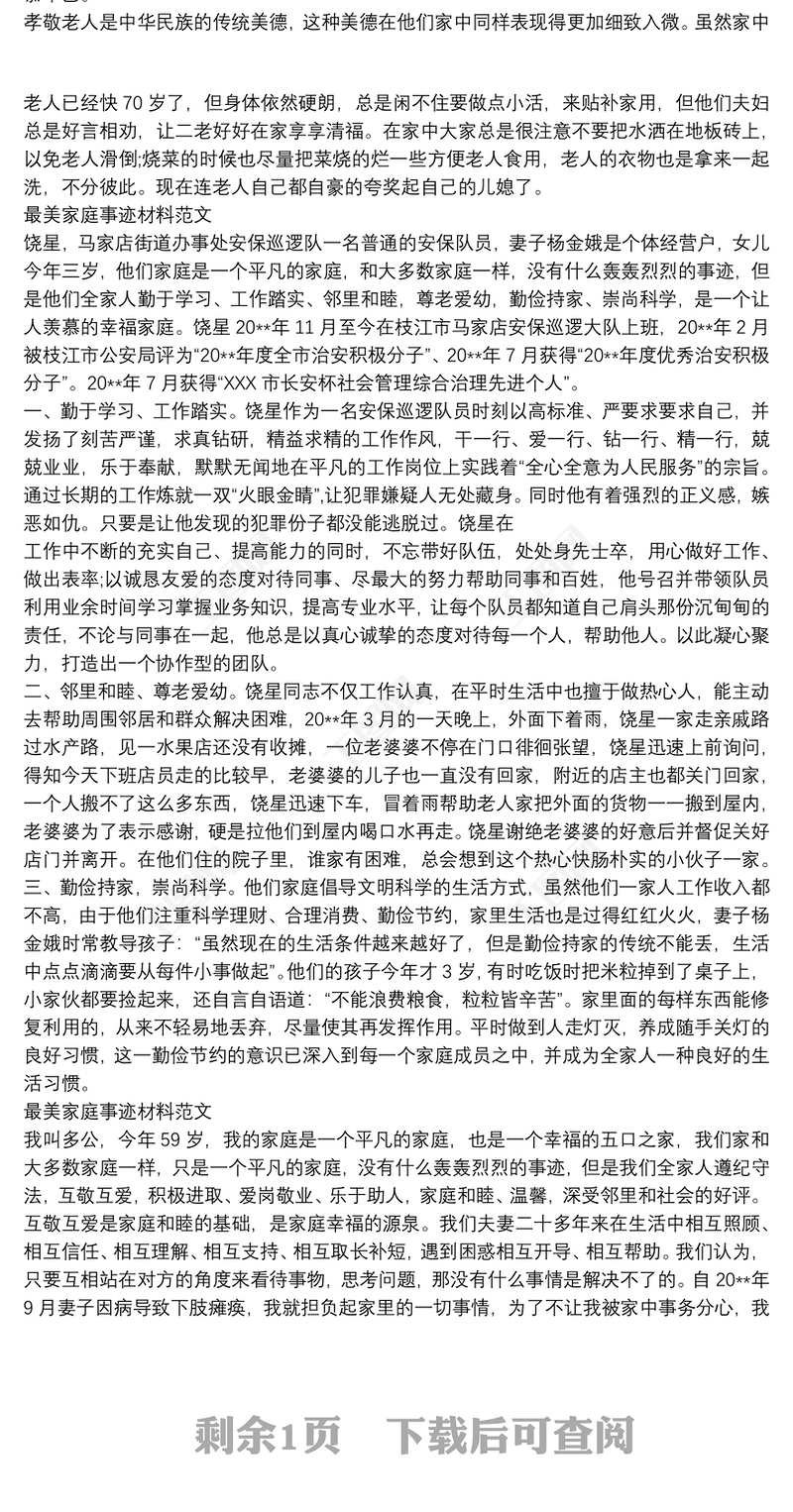 模范家庭事跡材料包含