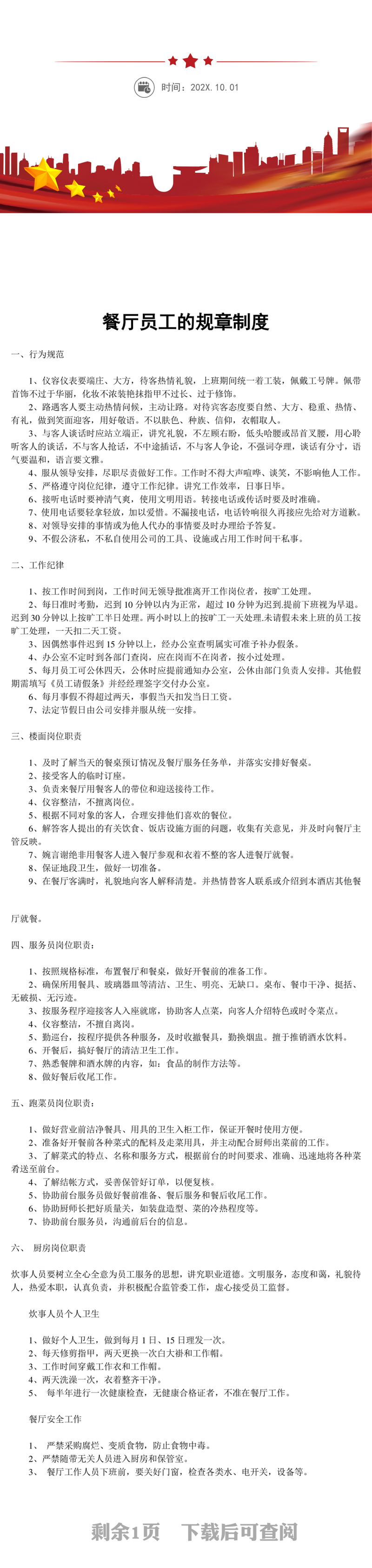 餐廳員工的規(guī)章制度,高清DOC圖片設(shè)計(jì)素材,1920x1080:0DPI,餐廳員工,規(guī)章制度,word模板,word格式,學(xué)校,文檔,公司文檔,文件,合同,電子文檔,word模板,商務(wù),公司制度,簡(jiǎn)潔大方,可編輯文檔 Array