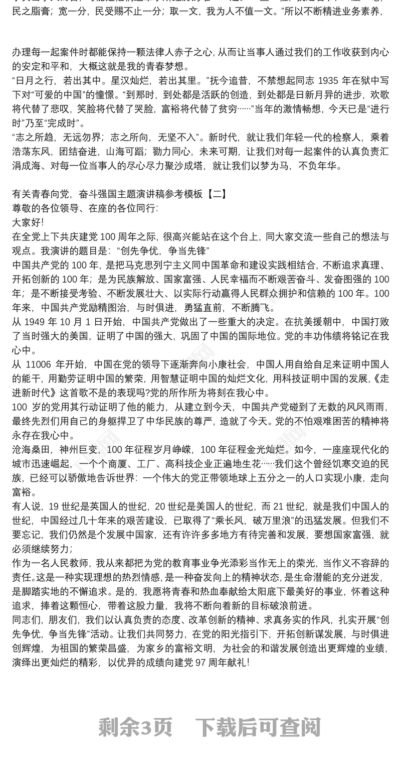 有關(guān)青春向黨,奮斗強國主題演講稿參考模板 Array
