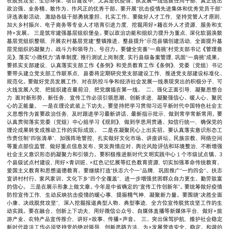 在2020年全縣組織工作會議上的講話工作會議講話包含