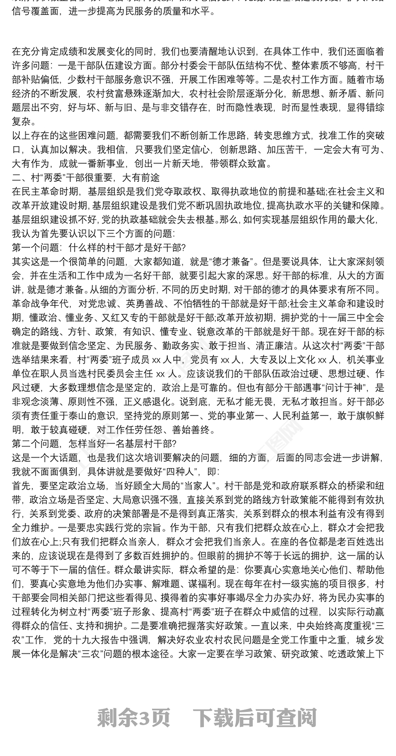 從“兩個(gè)很重要”來(lái)認(rèn)識(shí)農(nóng)村工作和農(nóng)村干部——在全縣新一屆村“兩委”干部培訓(xùn)班上的黨課報(bào)告范文 Array