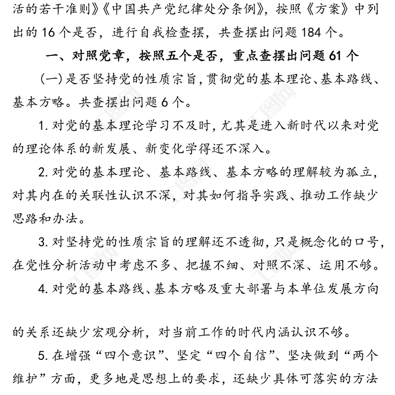 在不忘初心牢記使命主題教育中對照黨章黨規(guī)查擺的184個問題庫,不忘初心牢記使命主題教育,公文范例,領(lǐng)導(dǎo)述職報告,機關(guān)公文寫作 Array