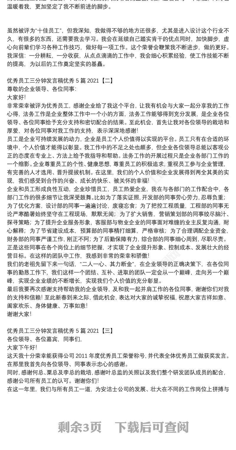 年終優秀員工發言稿2020三篇包含