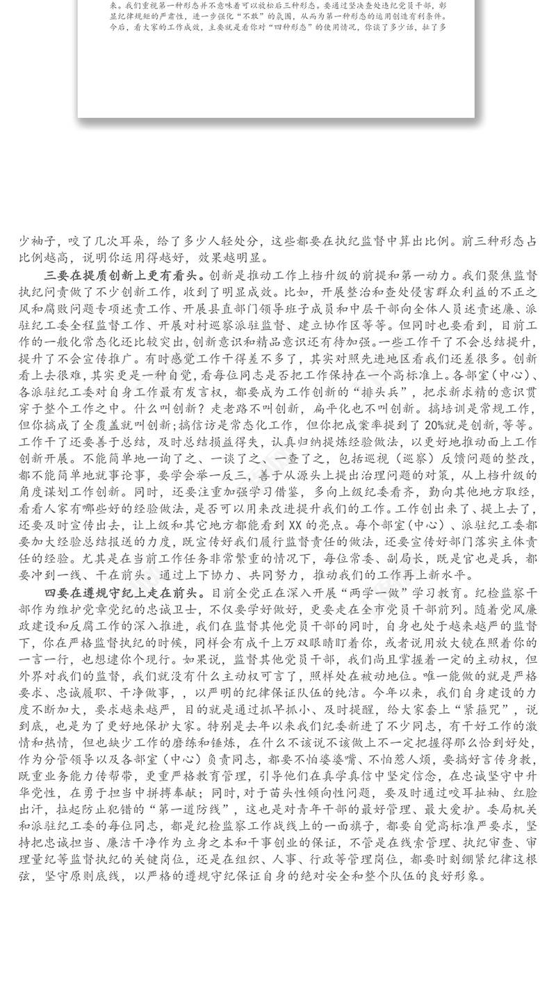 X縣紀委書記在委機關務虛會上的講話 Array