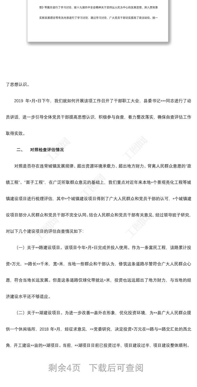 工圖網提供2021基層領導班子關于“景觀亮化工程”過度化等“政績工程”“面子工程”問題專項整治工作自查評估報告供會員免費下載。更多精彩黨課PPT素材,盡在工圖網。