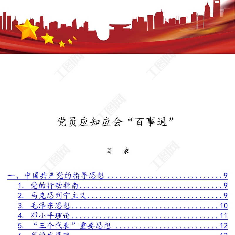 工圖網提供黨員百事通應知應會229條6.7萬字供會員免費下載。更多精彩黨課PPT素材,盡在工圖網。