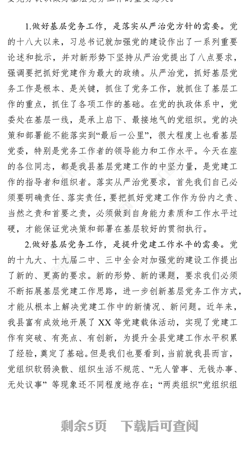 在黨支部書記及黨務工作者培訓班開班儀式上的講話包含